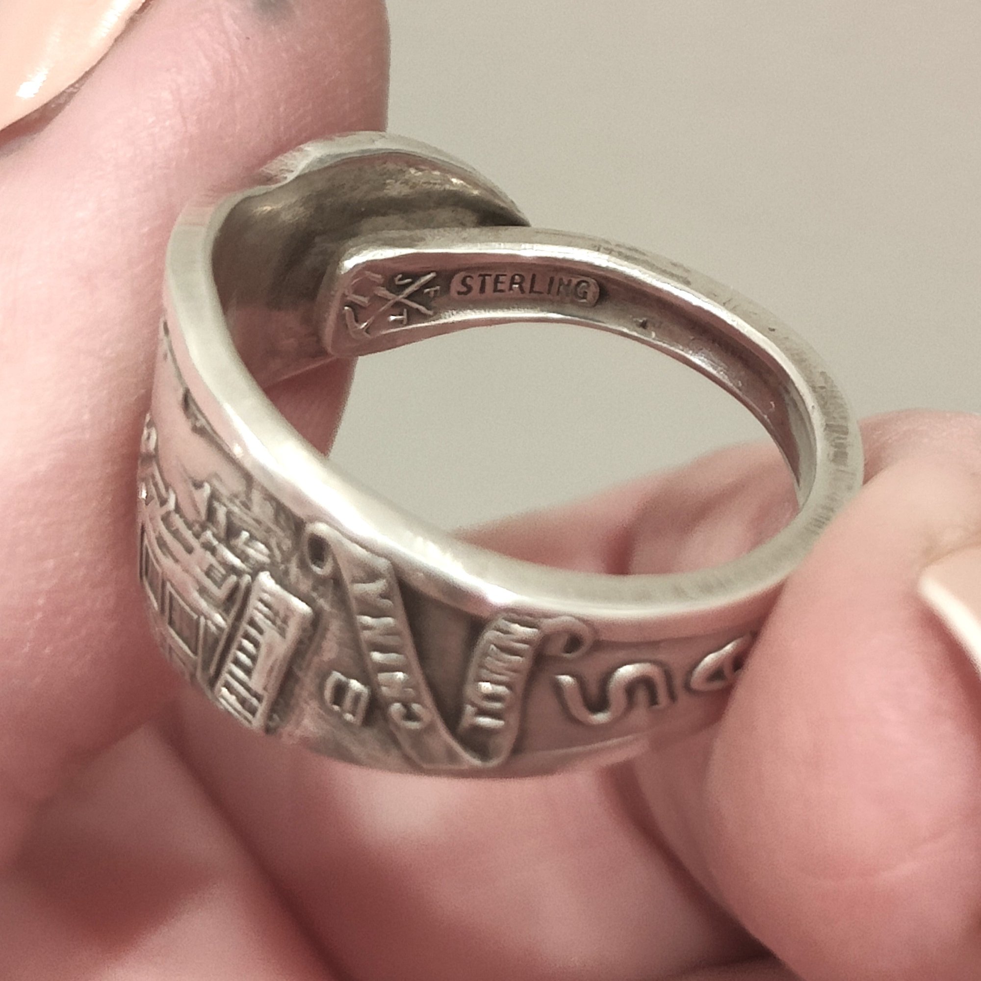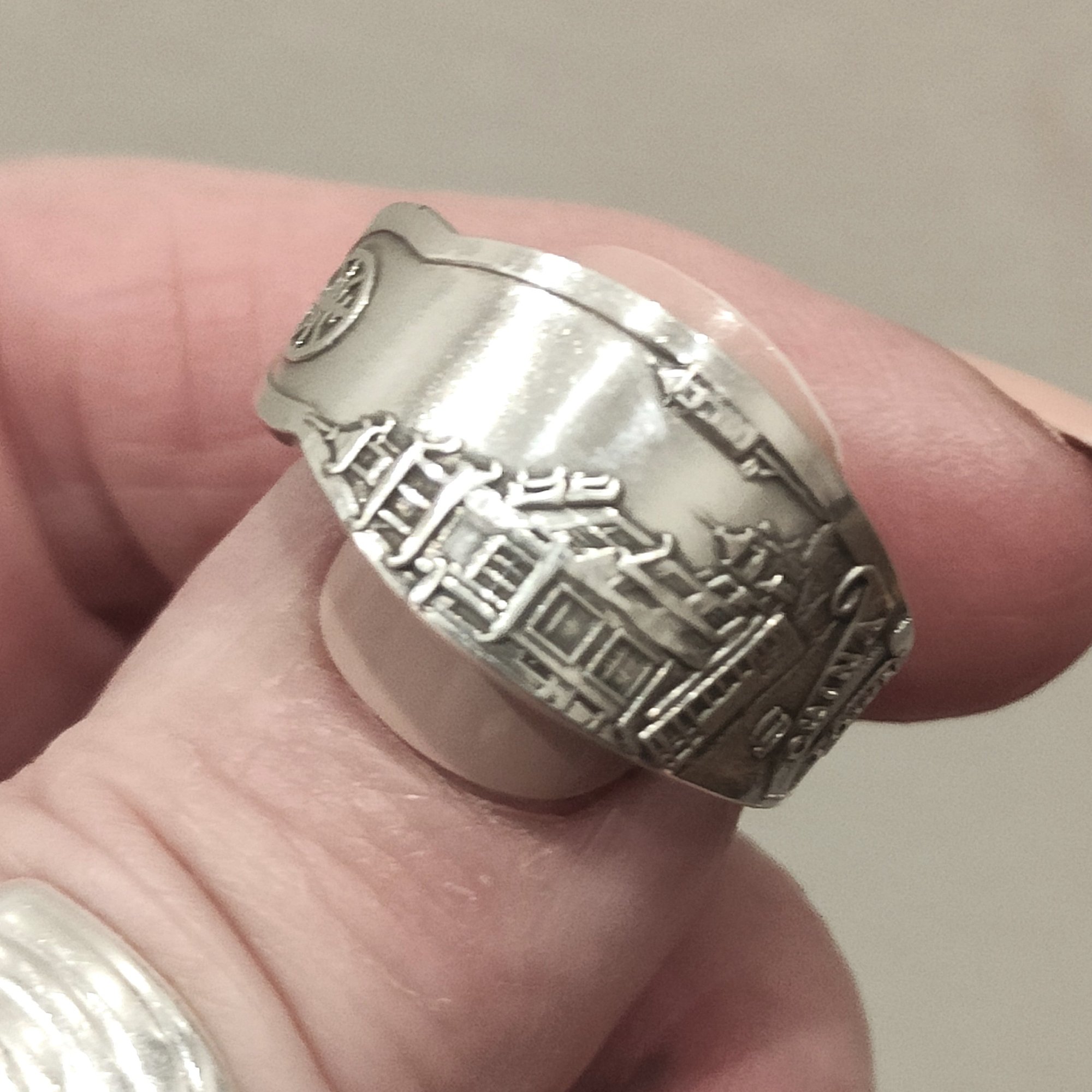 Crafted from a vintage sterling silver souvenir spoon that celebrates China Town, an integral part of San Francisco, this ring carries both history and charm. Originally made by Towle of Newburyport, Massachusetts (established 1882), it has been beautifully upcycled into a timeless piece of wearable art. Stamped Sterling with the Towle maker’s mark, it reflects the fine craftsmanship of traditional American silverware.
